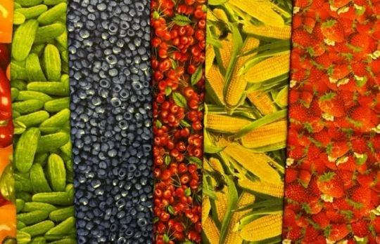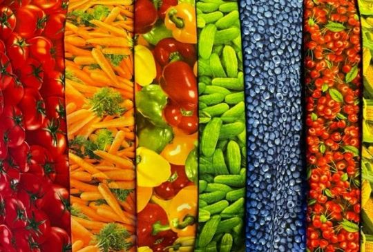 You pick which two vegetable or fruit fabrics are appliqued onto the design.
